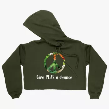 Women’s Cropped Fleece Give Peas a Chance Funny Vegan Hoodie – Vegan Print Hoodie – Vegetarian Funny Hoodies