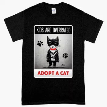 Kids Are Overrated Printed Heavy Cotton T-Shirt – Adopt A Cat Tee Shirt – Graphic T-Shirt